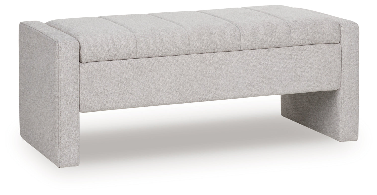 Whether gracing an entryway or sitting pretty in a main living area, this comfortably cushioned upholstered storage bench is packed with possibilities. Its clean, unfussy silhouette strikes a highly contemporary pose. Lift the hinged seat to reveal ample storage for your pillows, throws and everything in between.