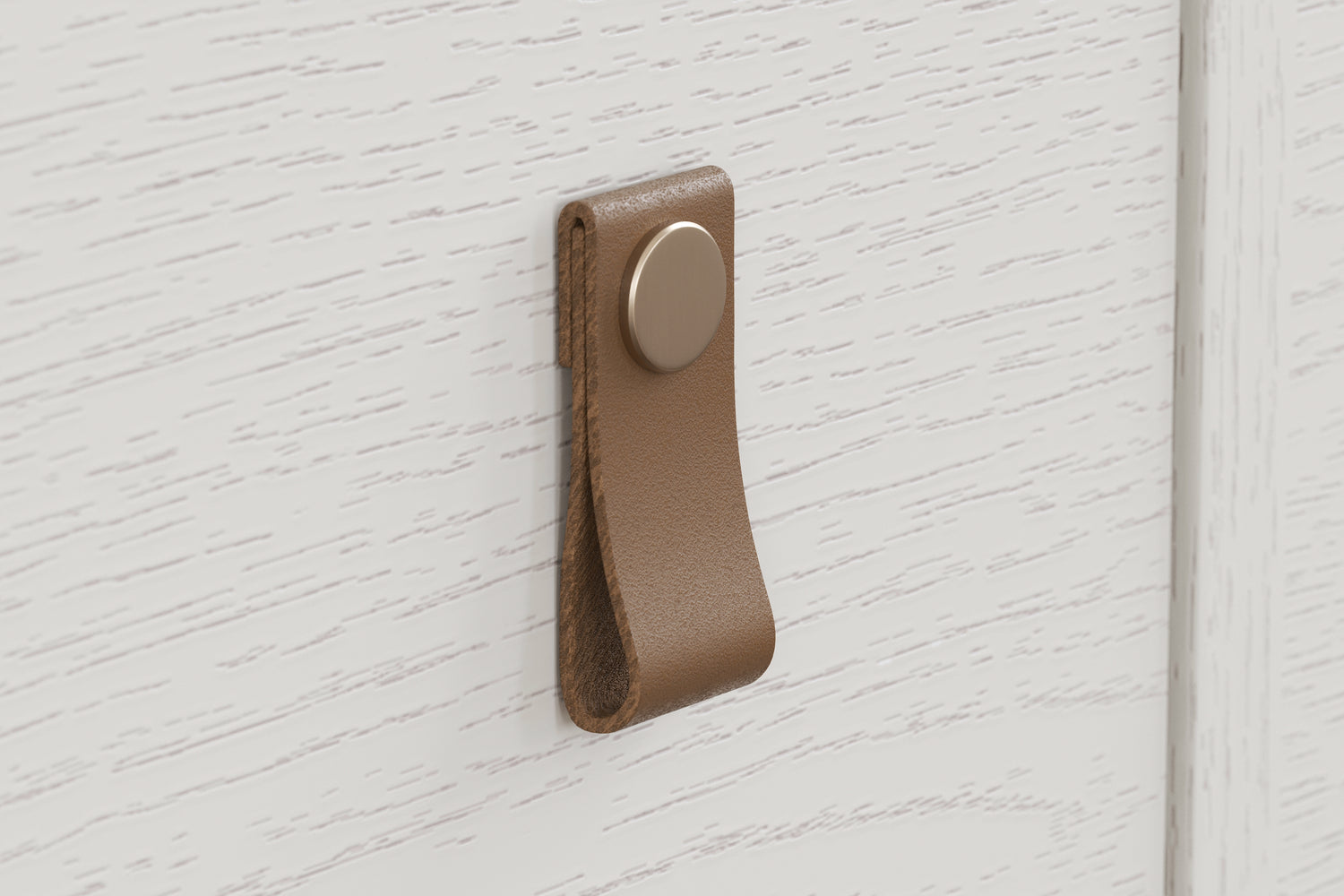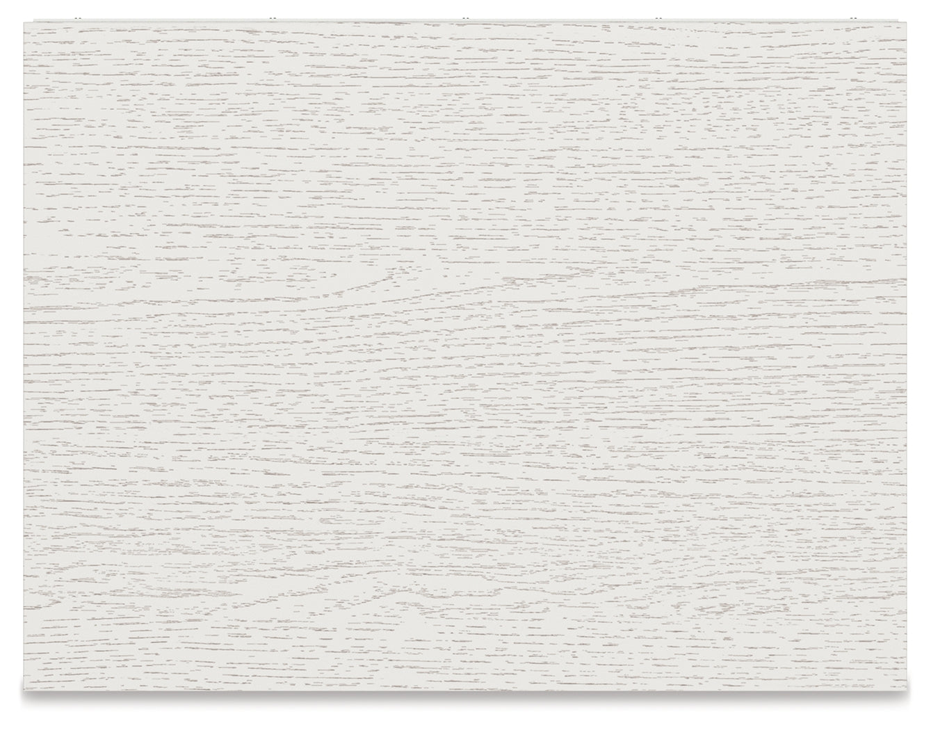Dare to take minimalism to the max. This bedroom package has an air of sleek simplicity thanks to its white painted finish with subtle replicated wood grain. Two sets of faux leather pulls in light brown and gray allow you to customize the drawers to suit your space.