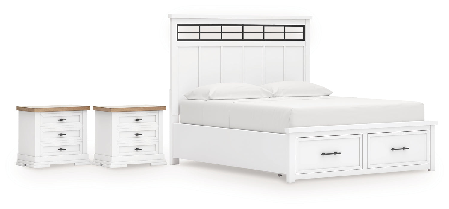Ashbryn 5-Piece California King Panel Storage Bed with 2 Nightstands (King/California King Storage Footboard, King/California King Panel Headboard with Roll Slats, California King Panel Rails, Nightstand, Nightstand)