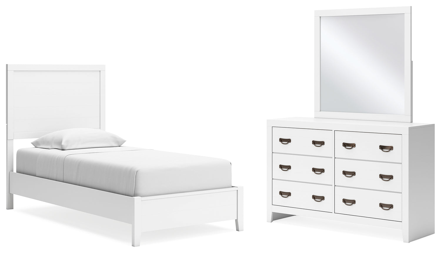 Binterglen 4-Piece Twin Panel Bed with Mirrored Dresser (Twin Panel Headboard/Footboard and Slats, Twin/Full Bed Rails, Dresser, Bedroom Mirror)