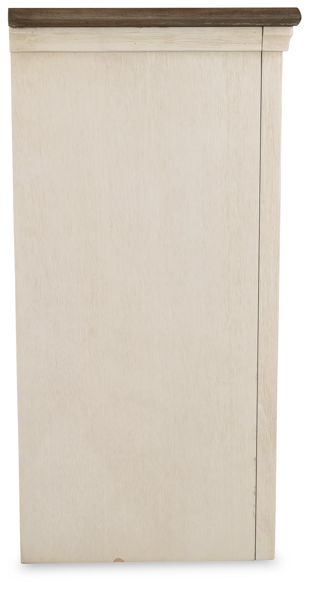 - Two-tone finish (weathered oak top over antiqued white)