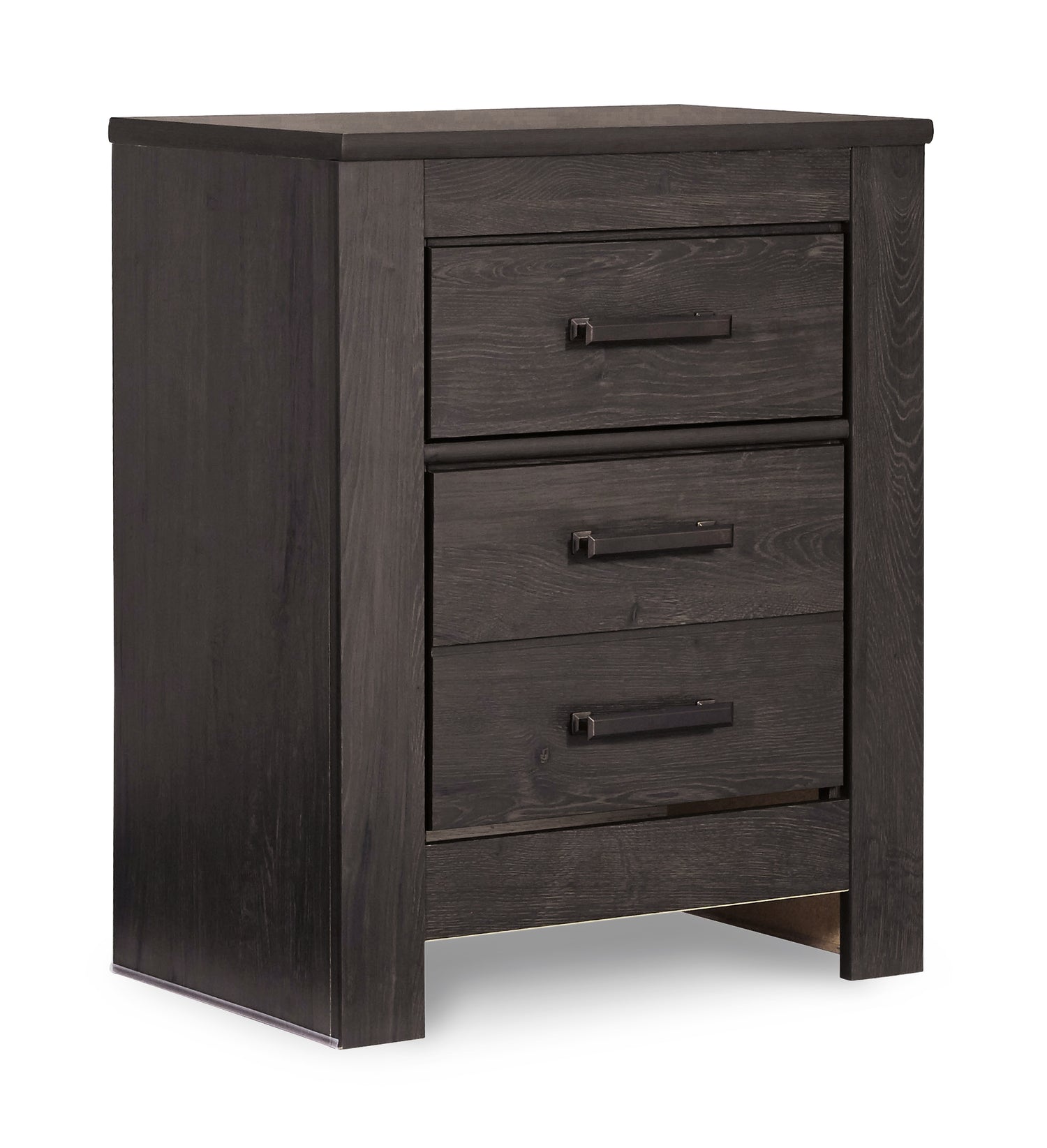 Priced to entice and styled to impress, this 4-piece bedroom set is urban sophistication with a decidedly relaxed air. It’s got the crisp, clean lines of a contemporary piece, but with an earthy element. Deep, horizontal grooves infuse depth and dimension, a replicated oak grain effect gives the charcoal gray finish warmth and character. Mattress and foundation/box spring sold separately.