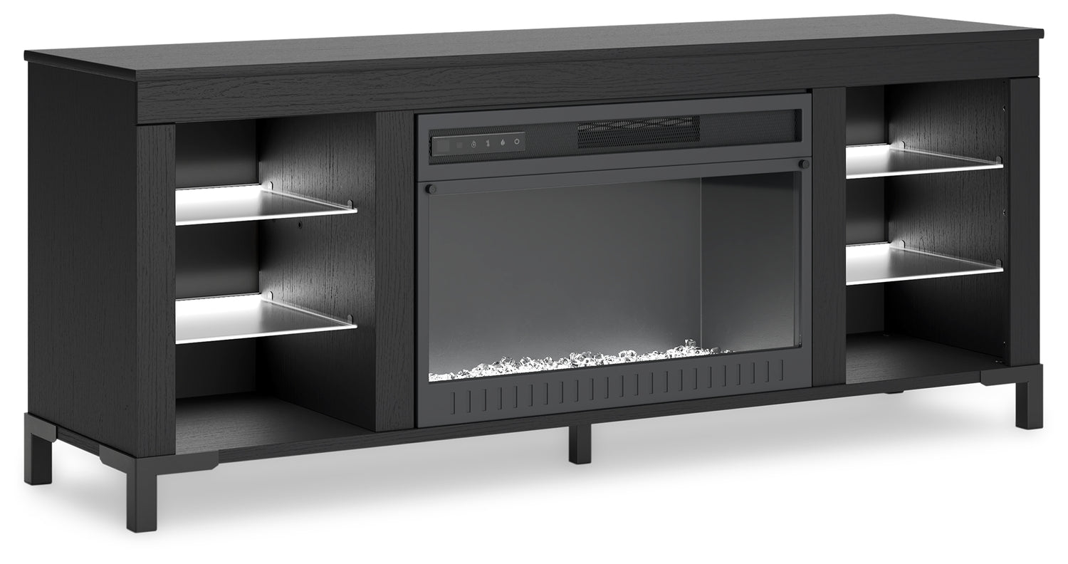 Level up your gaming experience and make movie nights to remember. This TV stand with electric fireplace extends your entertainment beyond the screen. Its built-in fireplace brings the heat, synchronizing with LED backlighting on the shelves. And you can customize the vibe with trendy color options: red, green, blue and magenta. Modern function. Captivating, cool style. With this TV stand, revamp your home’s recreational hub like never before.