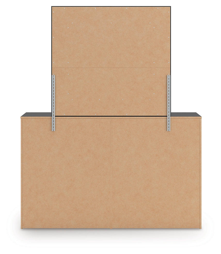 - Drawer interiors are lined with a faux linen laminate for a clean finished look.