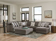 • 2 Pc. 3 Piece RSF Chaise Sectional With 10 Pillows, Ottoman