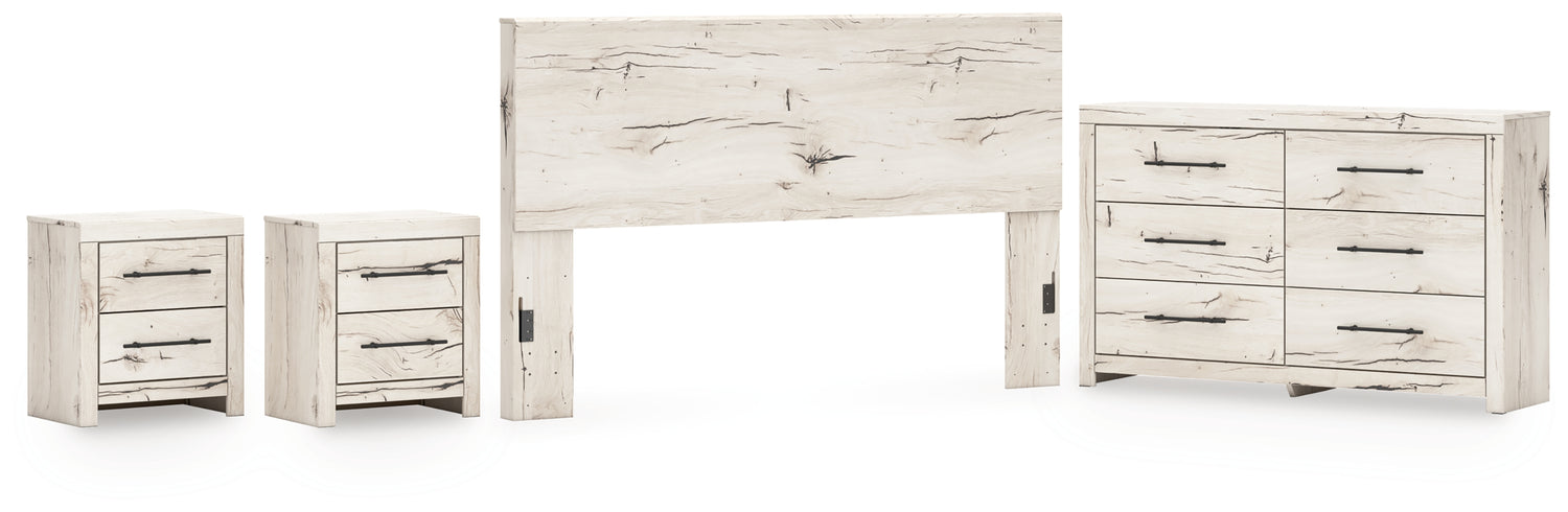 Lawroy 4-Piece King Panel Headboard with Mirrored Dresser and 2 Nightstands (King Panel Headboard, Dresser, Nightstand, Nightstand)