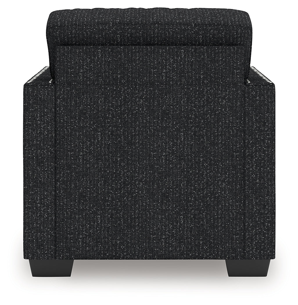 This stunning chair leaves a lasting impression. Its cozy cushions, chic coal-colored upholstery and striking nailhead trim are a perfect blend of comfort and contemporary design. And here’s the showstopper—ambient red, white and blue LED lighting along the chair's base. The look is simply wow.