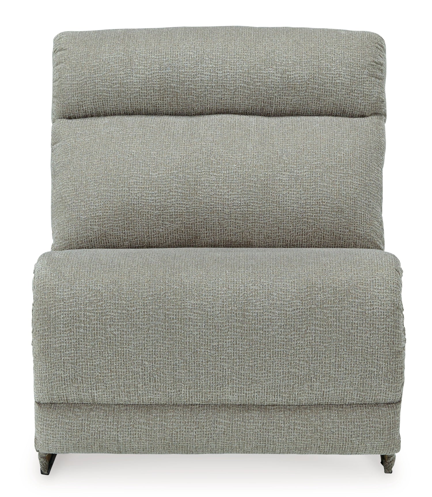 - Includes 4 pieces: left-arm facing power reclining back chaise, 2 armless chairs and right-arm facing power reclining back chaise