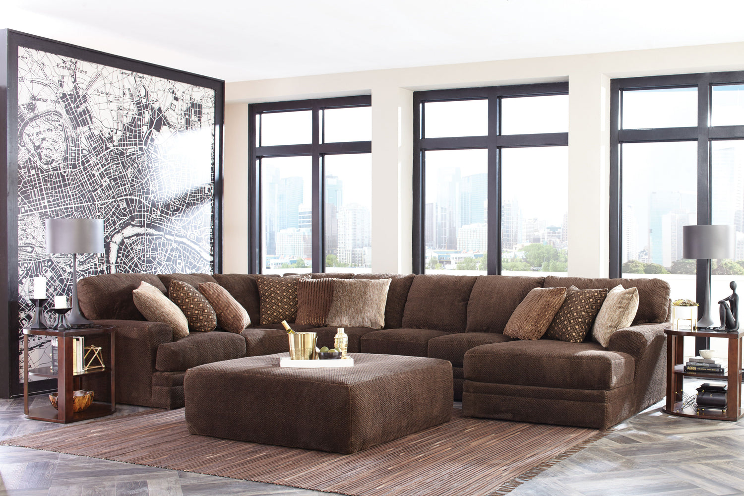 Mammoth - 3 Piece Sectional With Cocktail Ottoman (RSF Chaise) - Chocolate