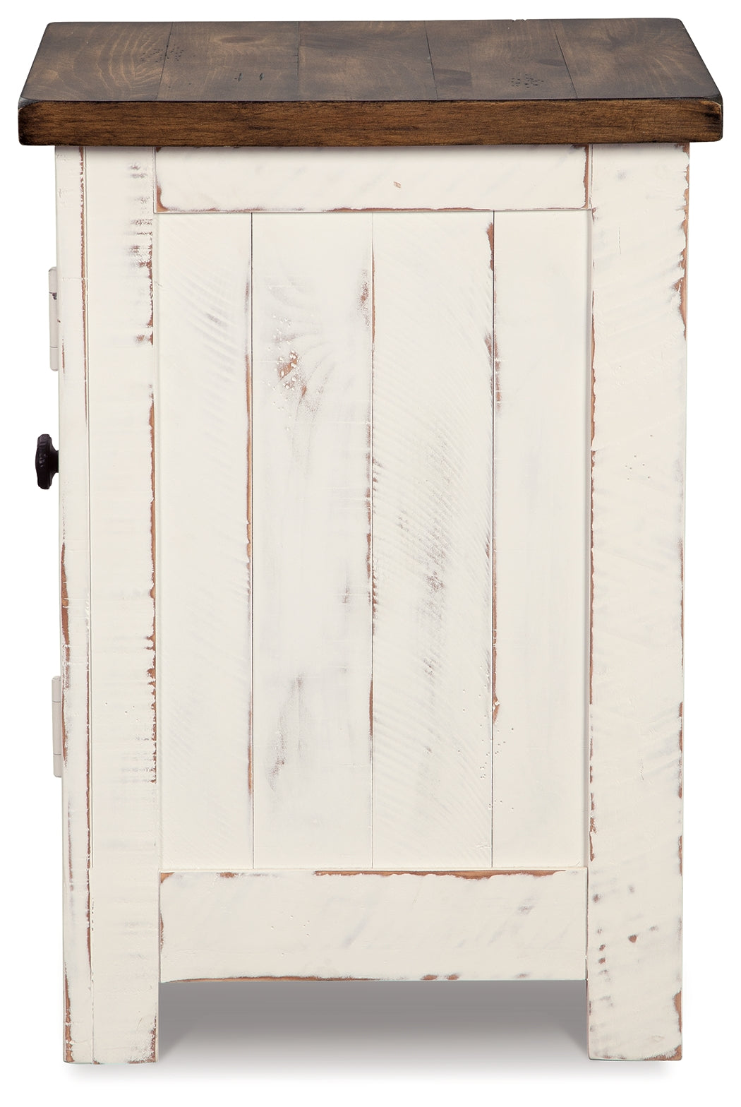 • Distressed vintage painted white finish contrasted with aged natural Pine color tops.
