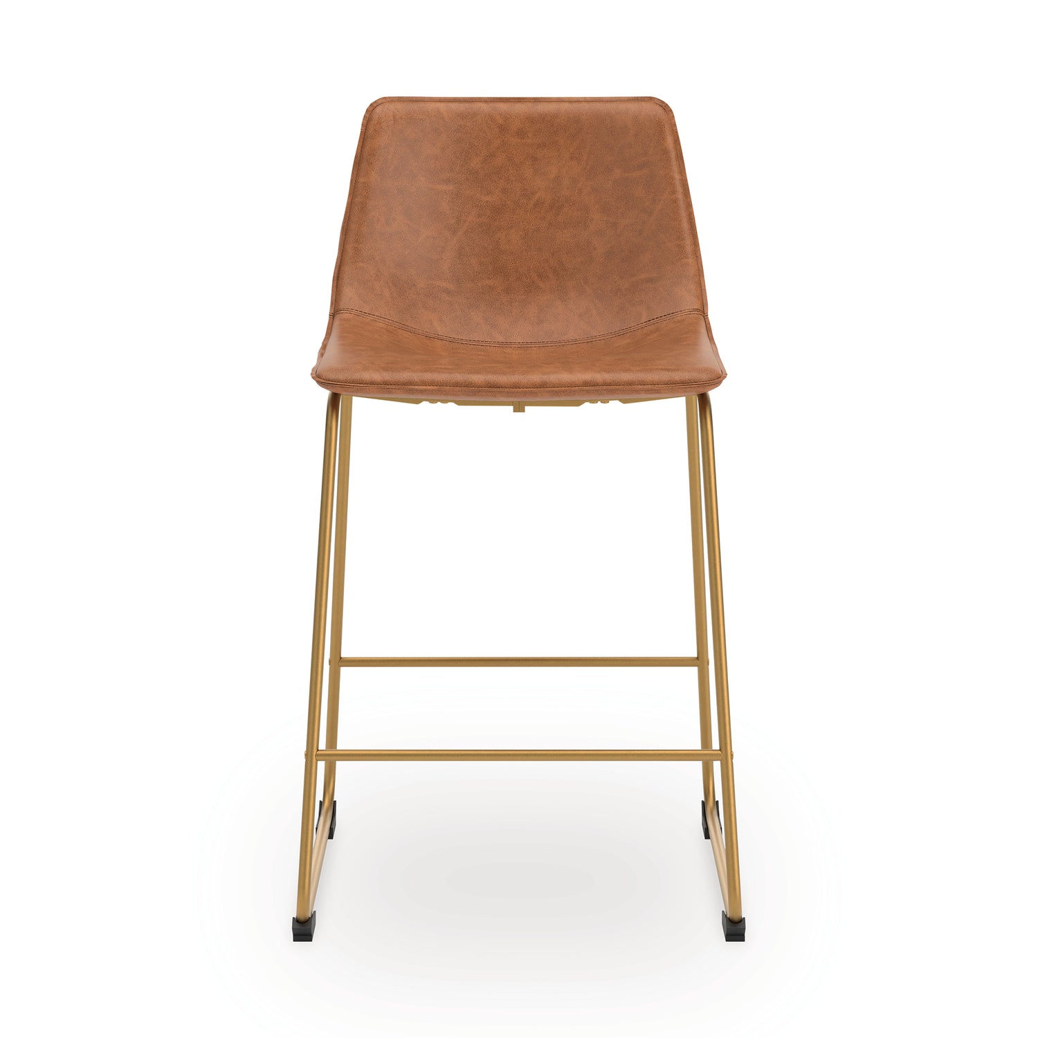 Dine in casual contemporary fashion with this counter height bar stool. A retro-inspired bucket design gives it a mid-century vibe. Sleek faux leather and a luxe goldtone frame bring the look right into the present. And with a contoured seat for your comfort, it dishes out style and convenience all in one.