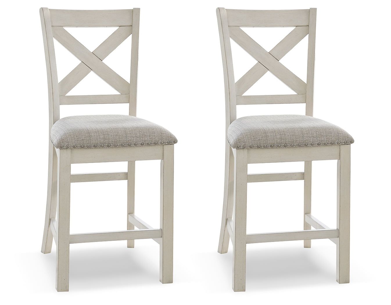 This dining package is sure to impress come mealtime. With its antiqued white finish and a planked effect tabletop, farmhouse-style dining has never been so fashionable. All that’s missing is you and your family.