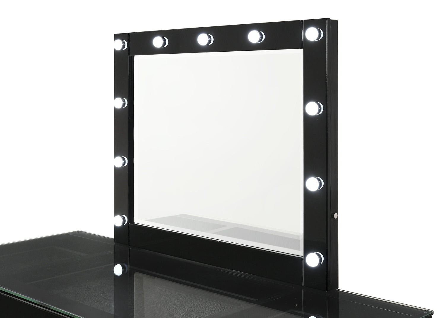 Avery - Vanity Desk With Glass Top, LED Mirror & Stool - Black