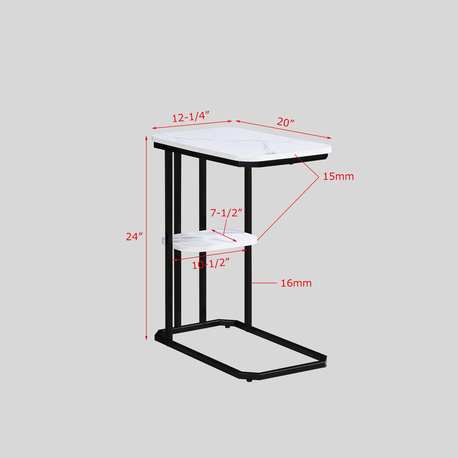 Add a touch of modern elegance to your living space with this sleek and versatile side table. The chic faux-marble tabletop delivers a luxurious aesthetic, while the sturdy metal frame provides both durability and contemporary appeal. Its compact yet functional design features a lower shelf for added storage, perfect for keeping your essentials within reach. Whether used as an accent piece next to a sofa, a stylish nightstand, or a convenient surface for your favorite plant, this table effortlessly combines practicality with a minimalist aesthetic. Perfect for modern and transitional interiors, it’s a statement of style and functionality.