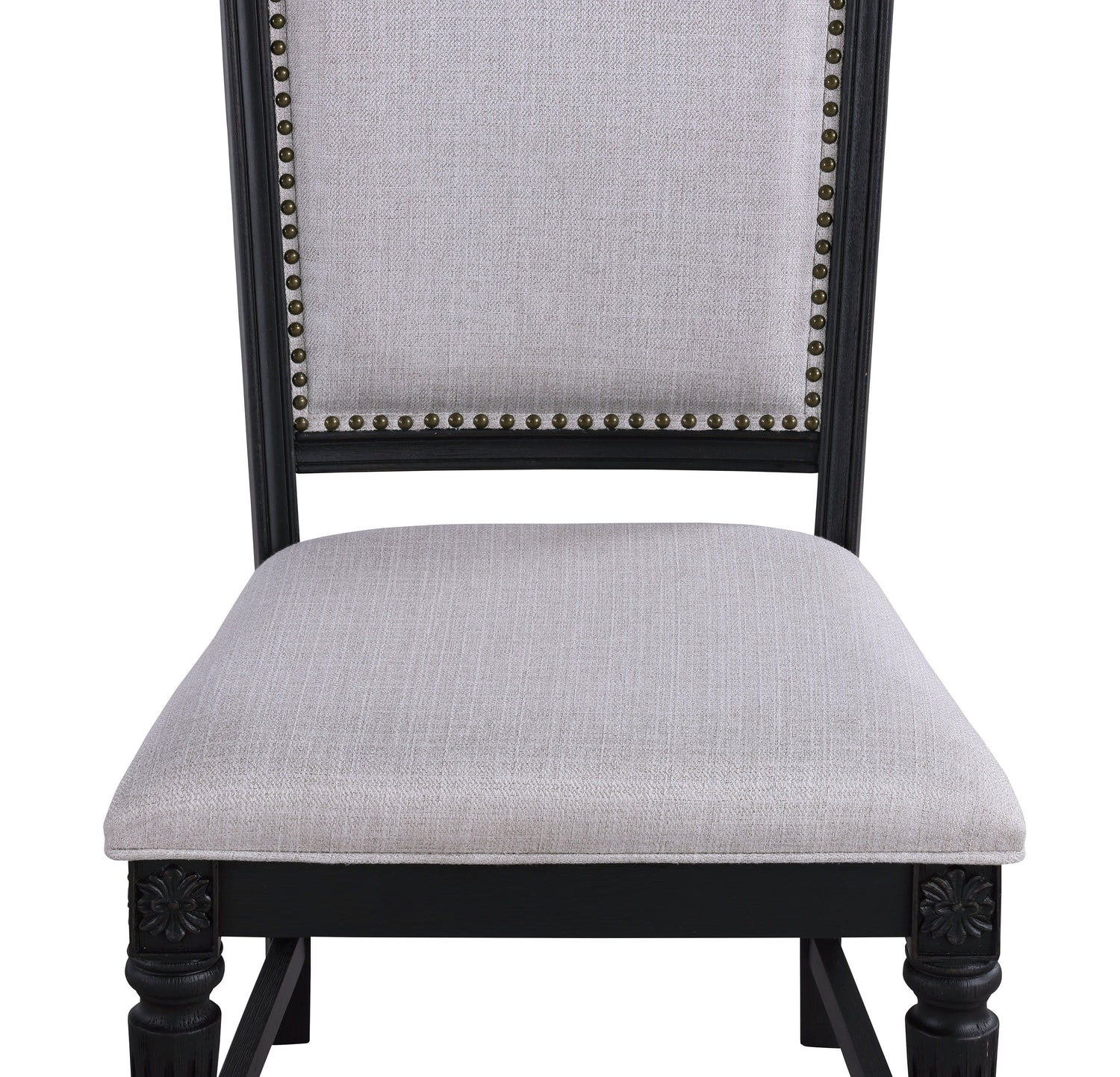 Elevate your dining experience with this elegantly crafted dining set, where traditional design meets modern sensibilities. The centerpiece, a rich black-finished table, stands on fluted legs, exuding an aura of sophistication and grandeur. Paired with matching chairs featuring plush, neutral-hued upholstery, this set seamlessly integrates comfort with class. The inclusion of a coordinated bench not only provides versatile seating options but also introduces a contemporary touch to the ensemble. Perfect for both intimate family dinners and grand celebrations, this dining set promises to be a timeless addition to your home, effortlessly blending luxury and functionality.