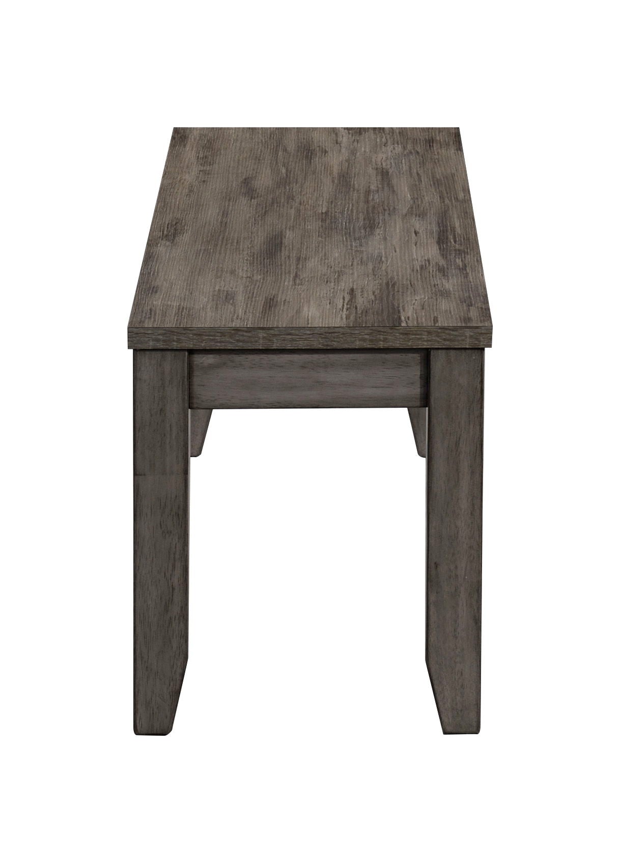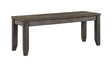 This dining group exudes contemporary elegance and rustic charm, making it a versatile addition to any dining space. The set features a robust rectangular table, finished in a sleek gray wash that highlights the natural wood grain, providing a warm and inviting centerpiece for family meals or casual gatherings. The accompanying chairs and bench are designed with clean, straight lines and a sturdy build, ensuring both comfort and durability. The bench offers flexible seating options, perfect for accommodating extra guests or creating a more informal dining atmosphere. This ensemble's understated style is complemented by its practical functionality, making it an ideal choice for modern homes that value both aesthetics and usability.