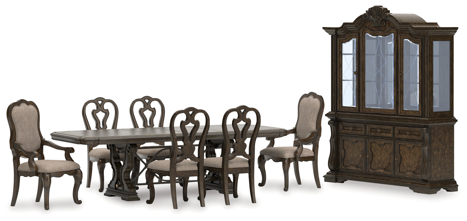 From its ornamental appliques to its large scale, this dining package makes a bold statement. With ornate details, the opulent set wows with stunning style. The look is timeless. The feel? Right at home.
