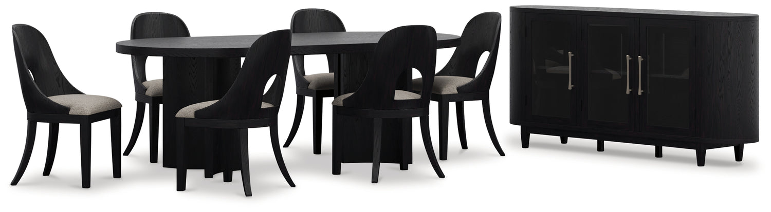 Rowanbeck 8-Piece Dining Table and 6 Chairs with Storage (Dining Table, Dining Chair, Dining Chair, Dining Chair, Dining Chair, Dining Chair, Dining Chair, Dining Server)