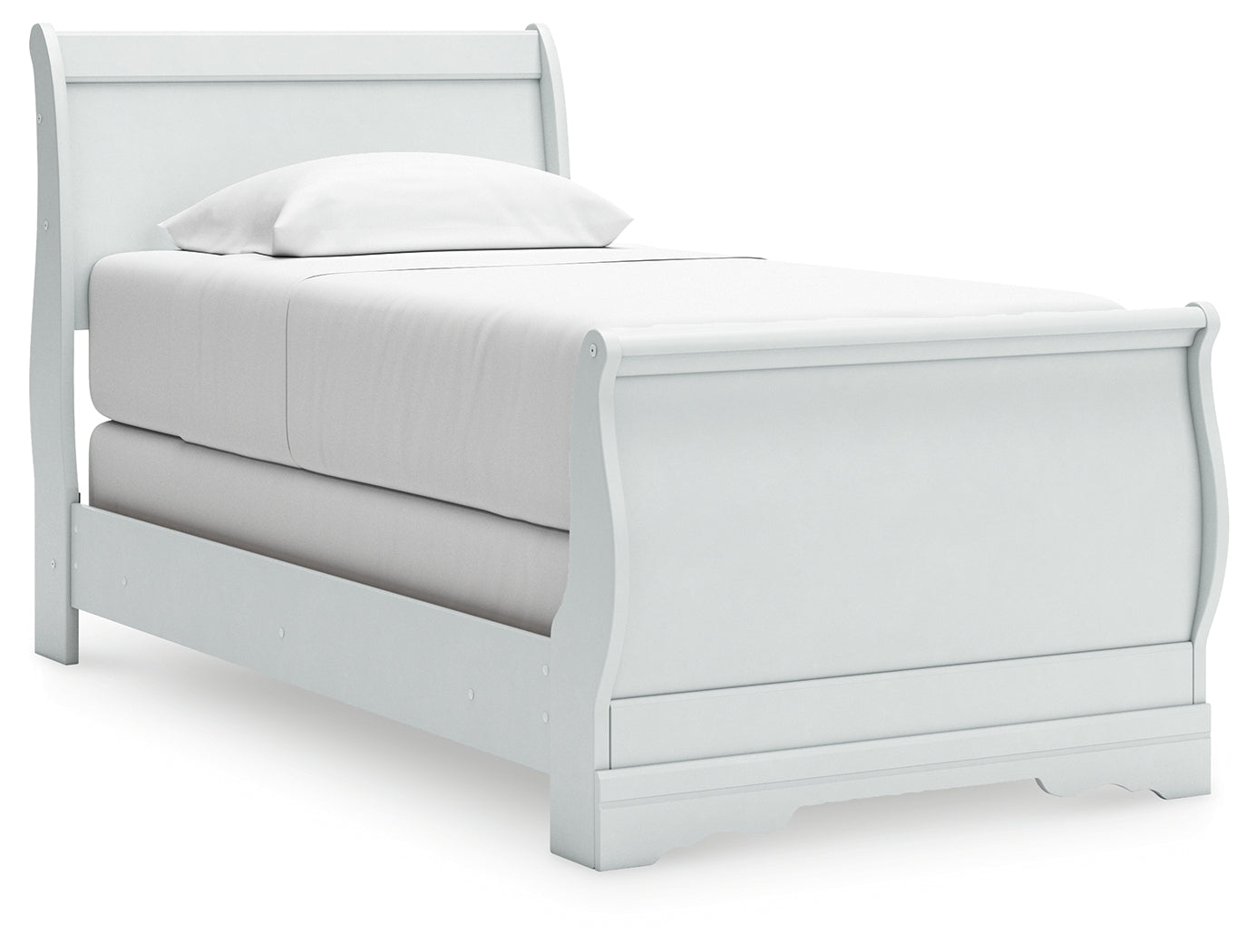 This queen sleigh bed's crisp cottage white gives traditional Louis Philippe profiling a delightful style awakening. The look is timeless. The feel? Right at home. Mattress and foundation/box spring available, sold separately.