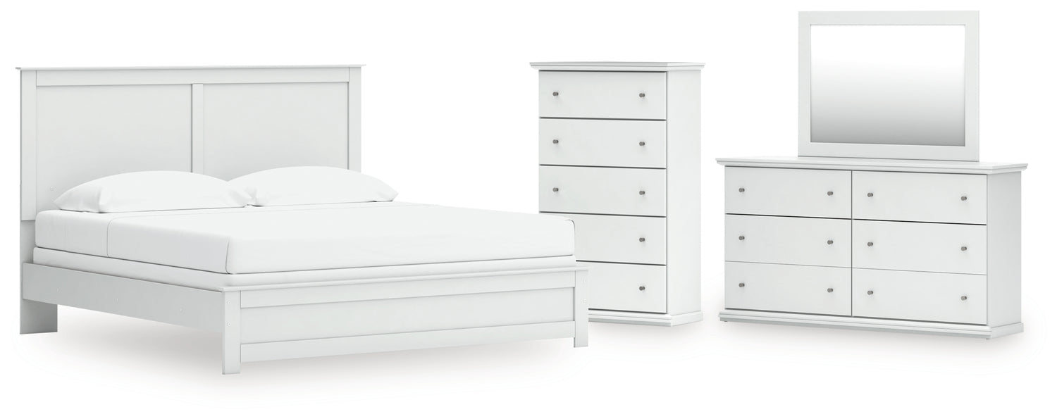Bostwick Shoals 5-Piece King Panel Bed with Mirrored Dresser and Chest (King Panel Rails, King Panel Headboard/Footboard, Dresser, Bedroom Mirror, Chest of Drawers)