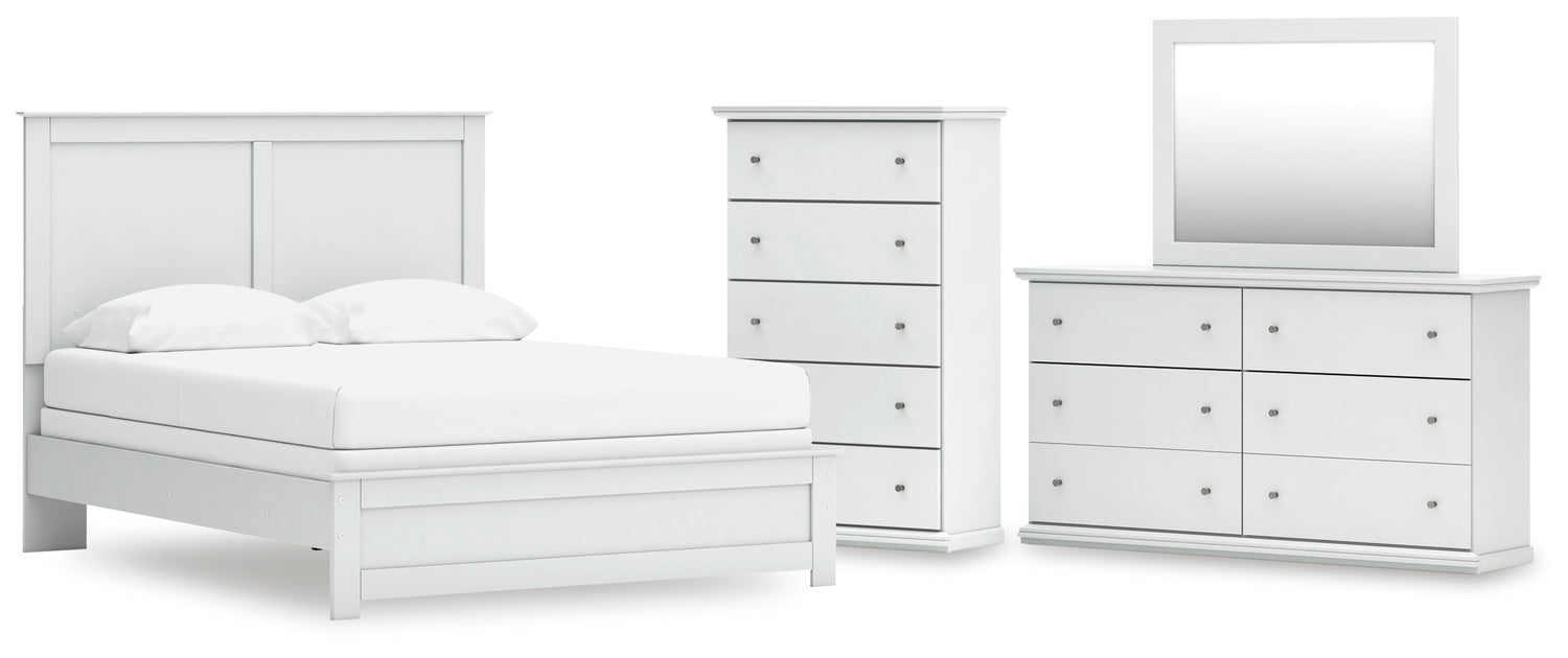Bostwick Shoals 5-Piece Queen Panel Bed with Mirrored Dresser and Chest (Queen Panel Rails, Queen Panel Headboard/Footboard, Dresser, Bedroom Mirror, Chest of Drawers)