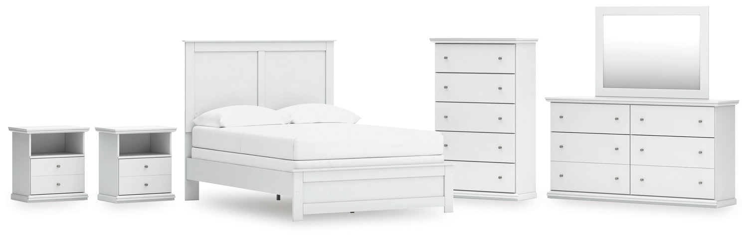 Bostwick Shoals 7-Piece Full Panel Bed with Mirrored Dresser, Chest and 2 Nightstands (Full Panel Rails, Full Panel Headboard/Footboard, Dresser, Bedroom Mirror, Chest of Drawers, Nightstand, Nightstand)