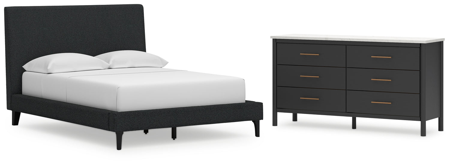 Cadmori 2-Piece Full Upholstered Bed with Dresser (Full Upholstered Bed with Roll Slats, Dresser)