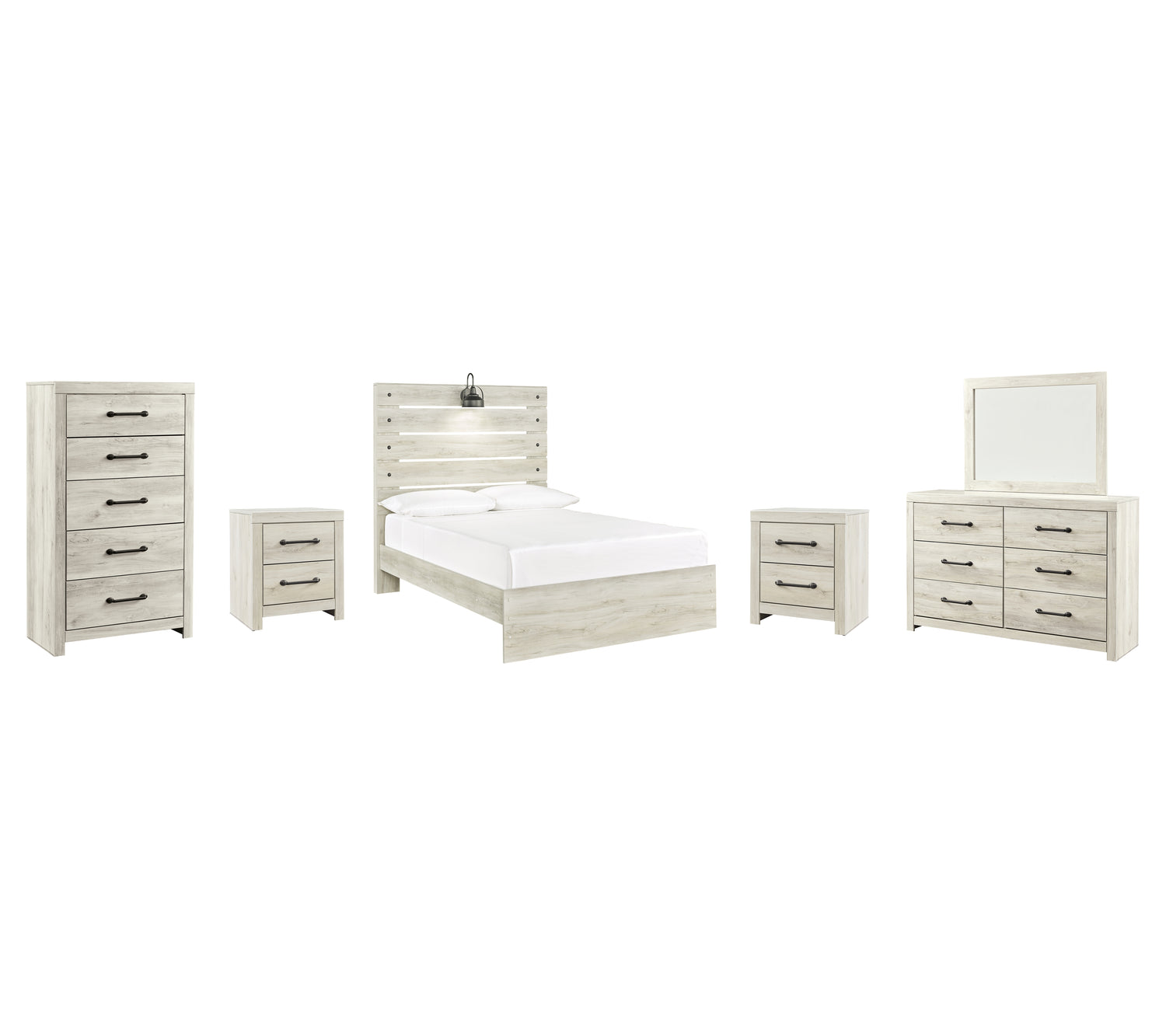Cambeck 8-Piece Full Panel Bed with Mirrored Dresser, Chest and 2 Nightstands (Chest of Drawers, Nightstand, Nightstand, Dresser, Bedroom Mirror, Full Panel Footboard, Full Panel Rails, Full Panel Headboard)