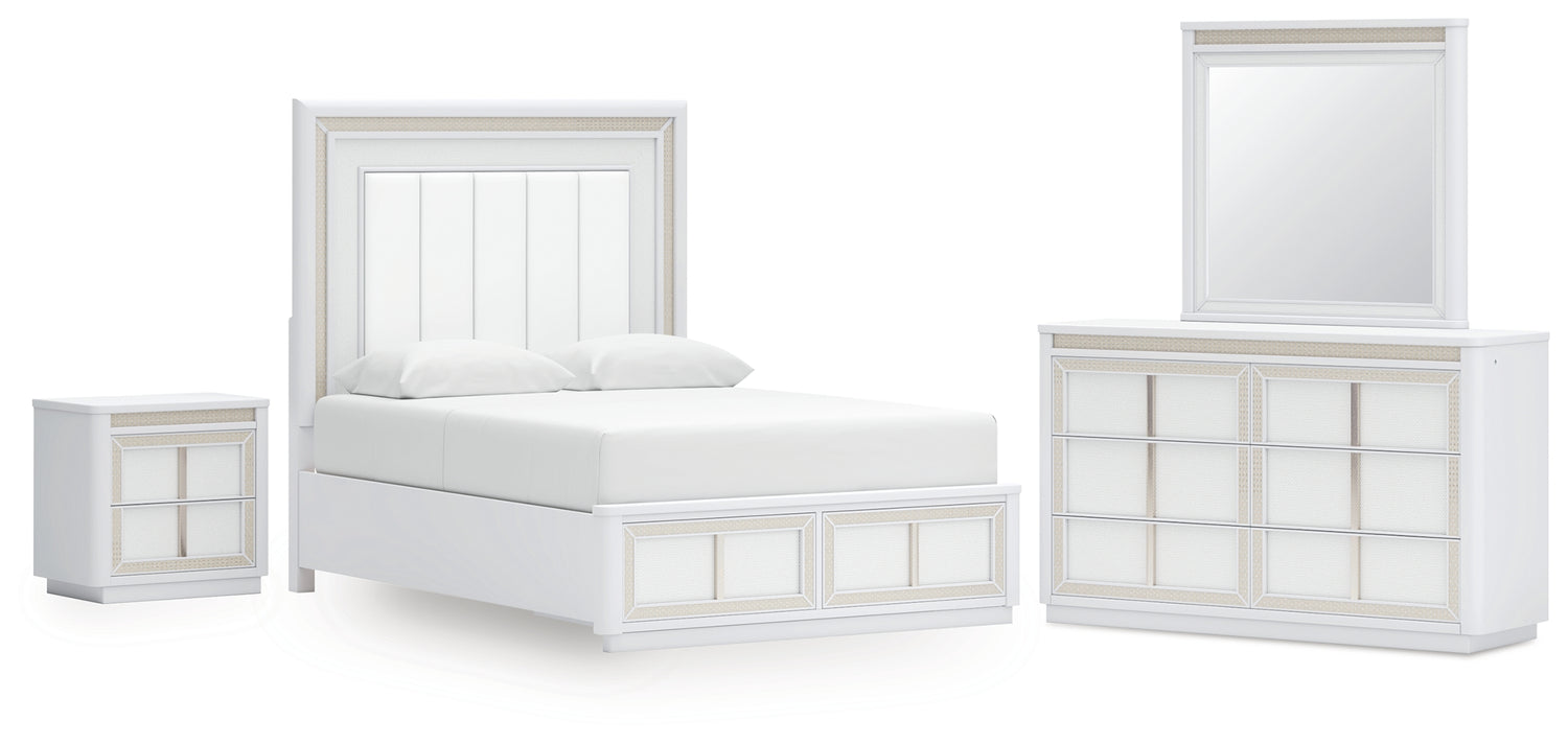 Chalanna 6-Piece Queen Upholstered Storage Bed with Mirrored Dresser and Nightstand (Queen Storage Footboard with Roll Slats, Queen Upholstered Panel Headboard, Queen/King Rails, Dresser, Bedroom Mirror, Nightstand)