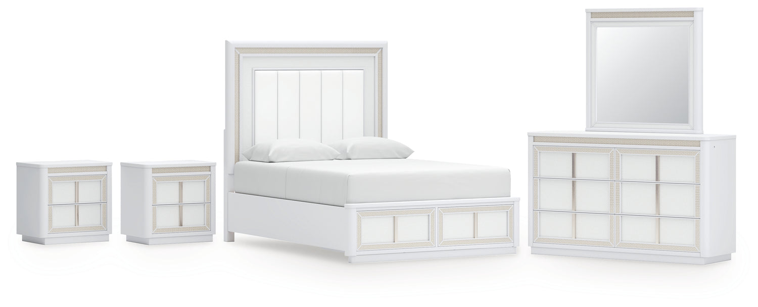 Chalanna 7-Piece Queen Upholstered Storage Bed with Mirrored Dresser and 2 Nightstand (Queen Storage Footboard with Roll Slats, Queen Upholstered Panel Headboard, Queen/King Rails, Dresser, Bedroom Mirror, Nightstand, Nightstand)