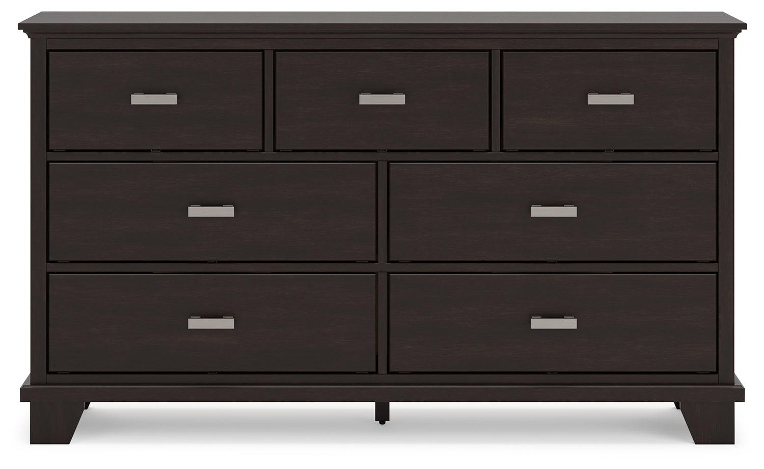 Feast your eyes on this richly versatile bedroom package. Its traditional-inspired dark brown finish effortlessly blends with contemporary details to create a stunning look that's not too stuffy or too trendy. Such a refined way to wake up your bedroom style.