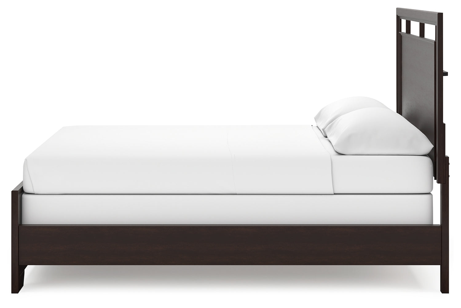 Feast your eyes on this richly versatile bedroom package. Its traditional-inspired dark brown finish effortlessly blends with contemporary details to create a stunning look that's not too stuffy or too trendy. Such a refined way to wake up your bedroom style.