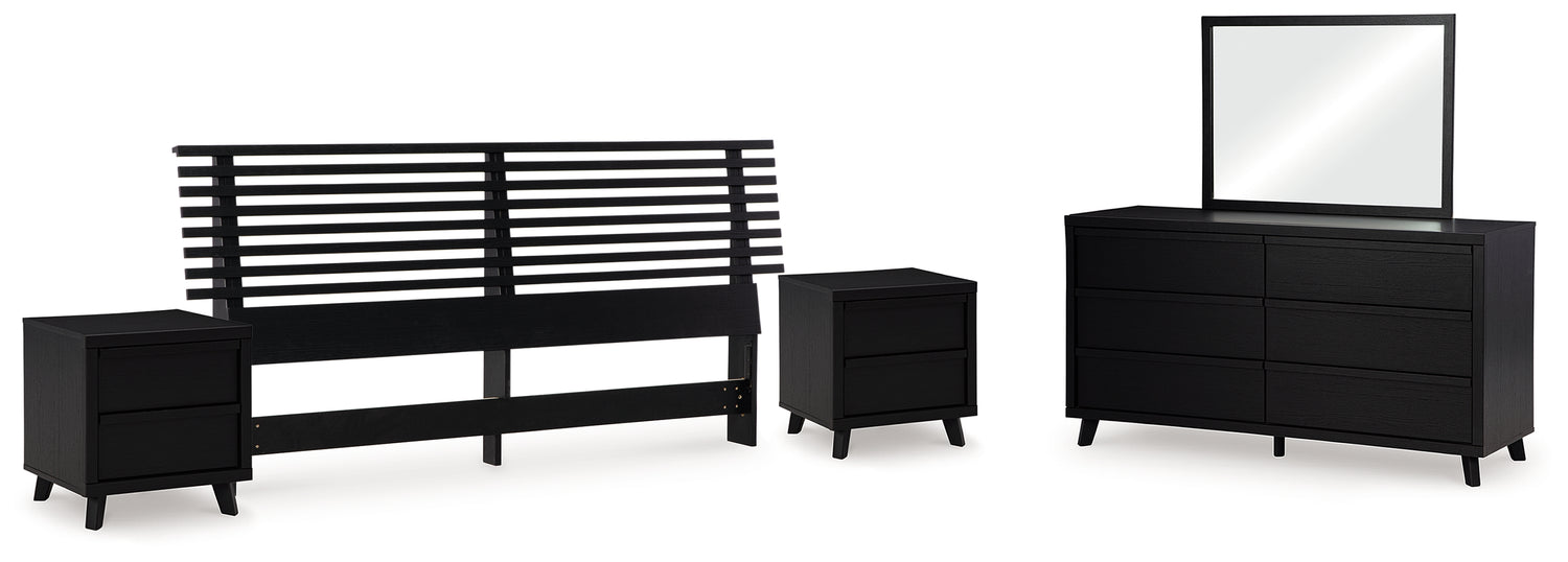 Danziar 5-Piece King Panel Headboard with Mirrored Dresser and 2 Nightstands (King Slat Headboard, Dresser, Bedroom Mirror, Nightstand, Nightstand)