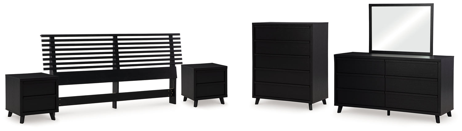 Danziar 6-Piece King Panel Headboard with Mirrored Dresser, Chest and 2 Nightstands (King Slat Headboard, Dresser, Bedroom Mirror, Wide Chest of Drawers, Nightstand, Nightstand) is backordered and will ship as soon as it is back in stock.