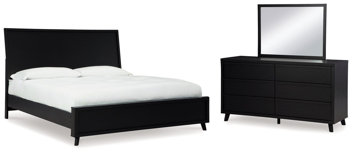 Danziar 6-Piece Queen Panel Bed with Mirrored Dresser (Platform Queen Roll Slats, Queen Panel Footboard, Queen Panel Headboard, Queen/King Platform Rails, Dresser, Bedroom Mirror)