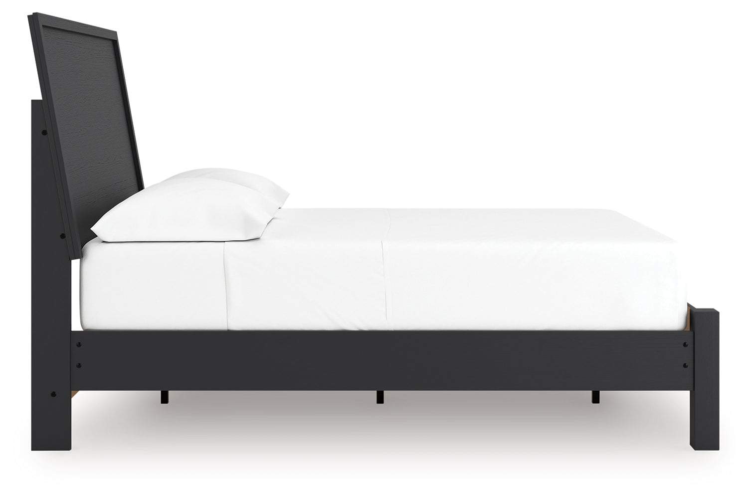 Sophisticated style for the savvy shopper. This panel bed prioritizes affordable, on-trend design. Its subtle replicated texture recalls the natural beauty of wood, highlighting the clean-lined styling. And a matte black finish suits different approaches to modern aesthetics. Mix and match with light and bright hues, or pair with other dark tones for a moody look.