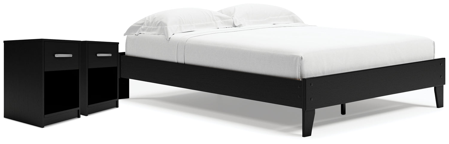 Finch 3-Piece Queen Platform Bed with 2 Nightstands (Queen Platform Bed, Nightstand, Nightstand)