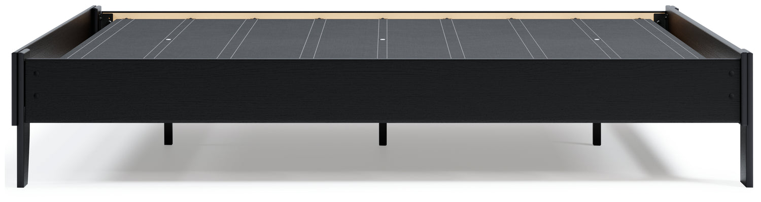 If you’re a fan of clean, crisp and contemporary interiors, rest assured this queen platform bed suits you. The linear profile is enhanced with a matte black finish with subtle replicated wood grain. Hard to believe such high style can be so attractively priced.
