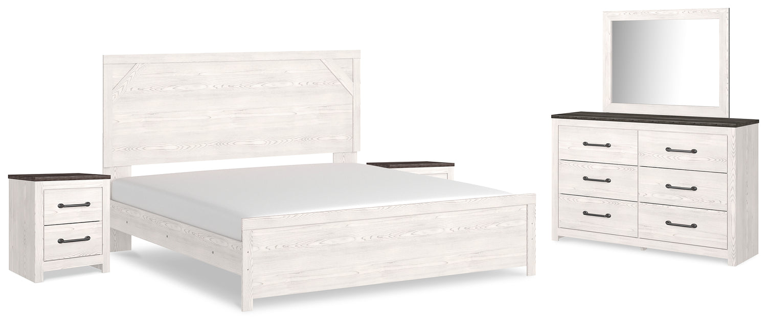 Gerridan 6-Piece King Panel Bed with Mirrored Dresser and 2 Nightstands (King Panel Headboard/Footboard, King Panel Rails, Dresser, Bedroom Mirror, Nightstand, Nightstand)