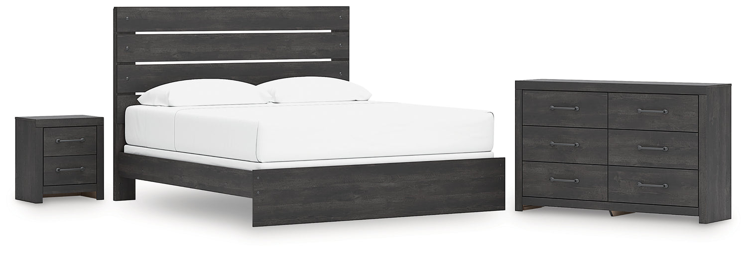 Hollivern 4-Piece King Panel Bed with Dresser and Nightstand (King Panel Headboard/Footboard, King Panel Rails, Dresser, Nightstand)