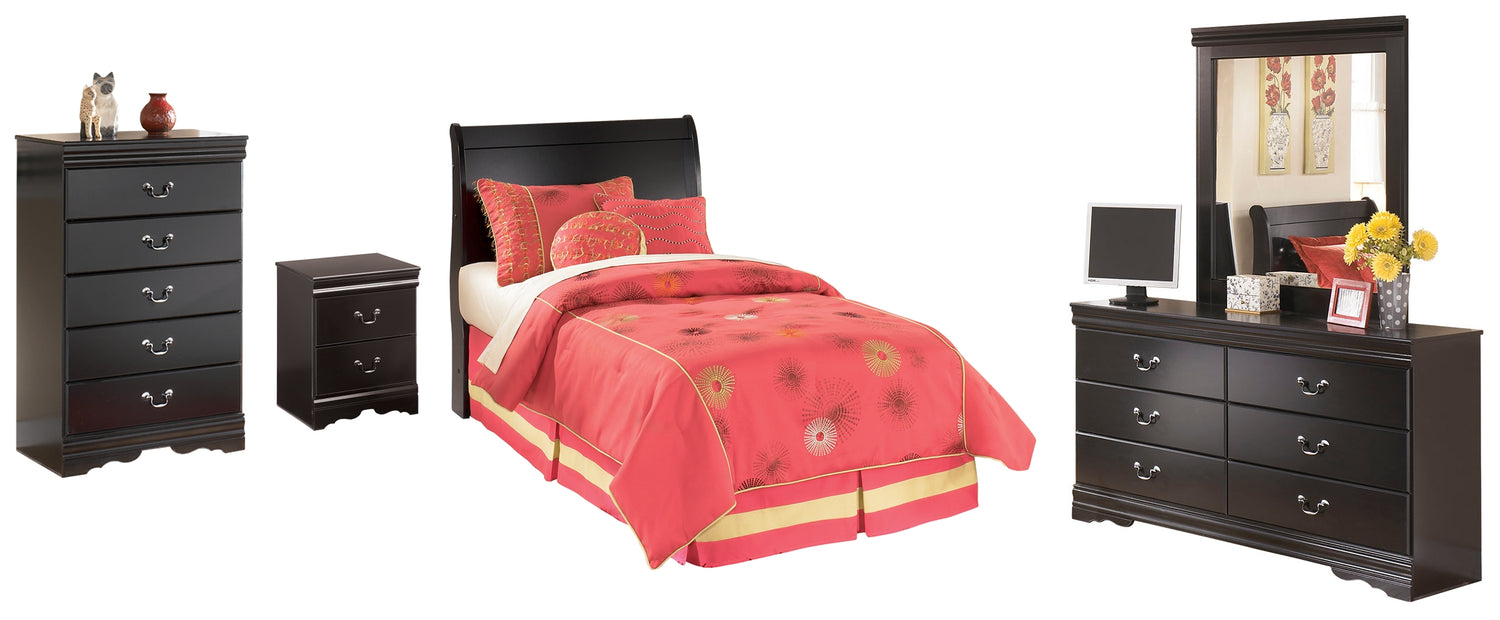 Huey Vineyard 5-Piece Twin Sleigh Headboard with Mirrored Dresser, Chest and Nightstand (Chest of Drawers, Twin Sleigh Headboard, Nightstand, Dresser, Bedroom Mirror) is backordered and will ship as soon as it is back in stock.