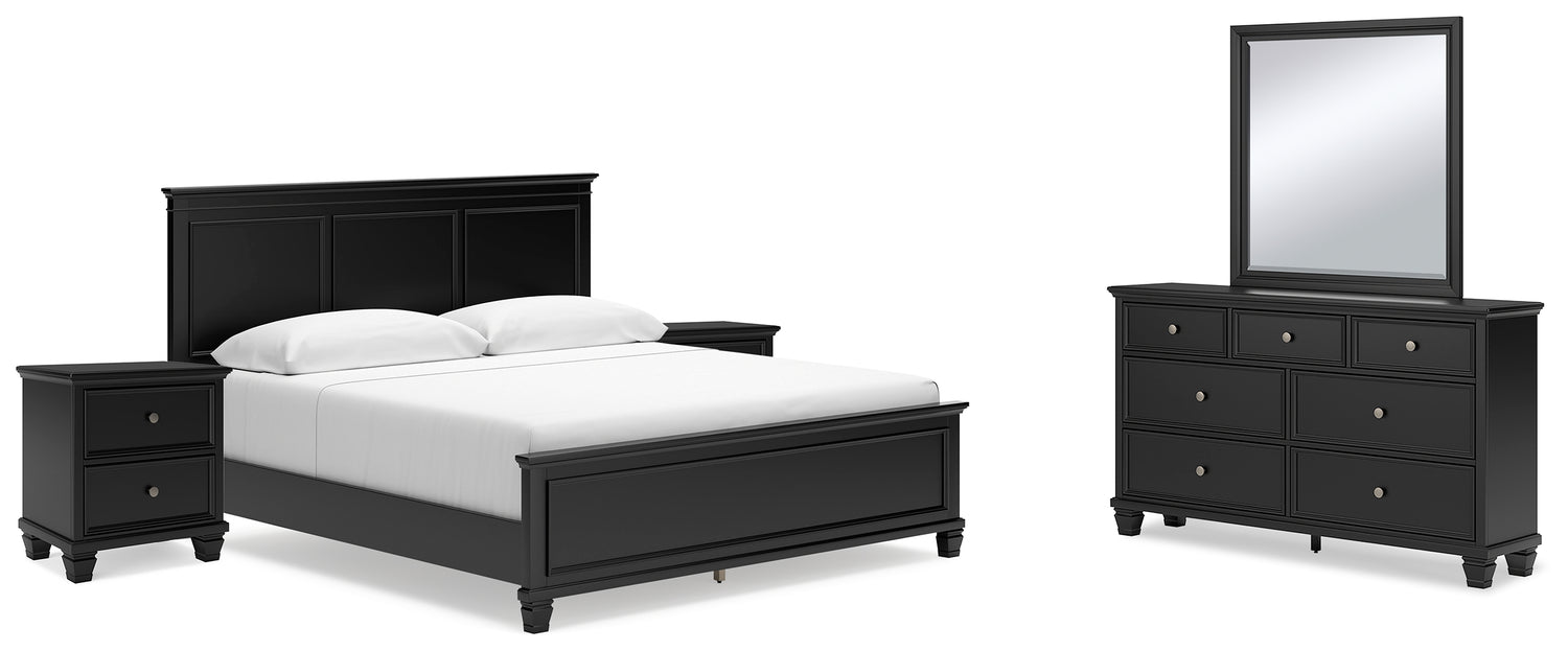 Lanolee 7-Piece King Panel Bed with Mirrored Dresser and 2 Nightstands (King/California King Panel Footboard, King/California King Panel Headboard, Queen/King Panel Rails, Dresser, Bedroom Mirror, Nightstand, Nightstand)