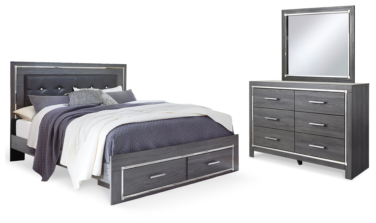 • Item Name: Lodanna King Upholstered Storage Bed, Dresser and Mirror