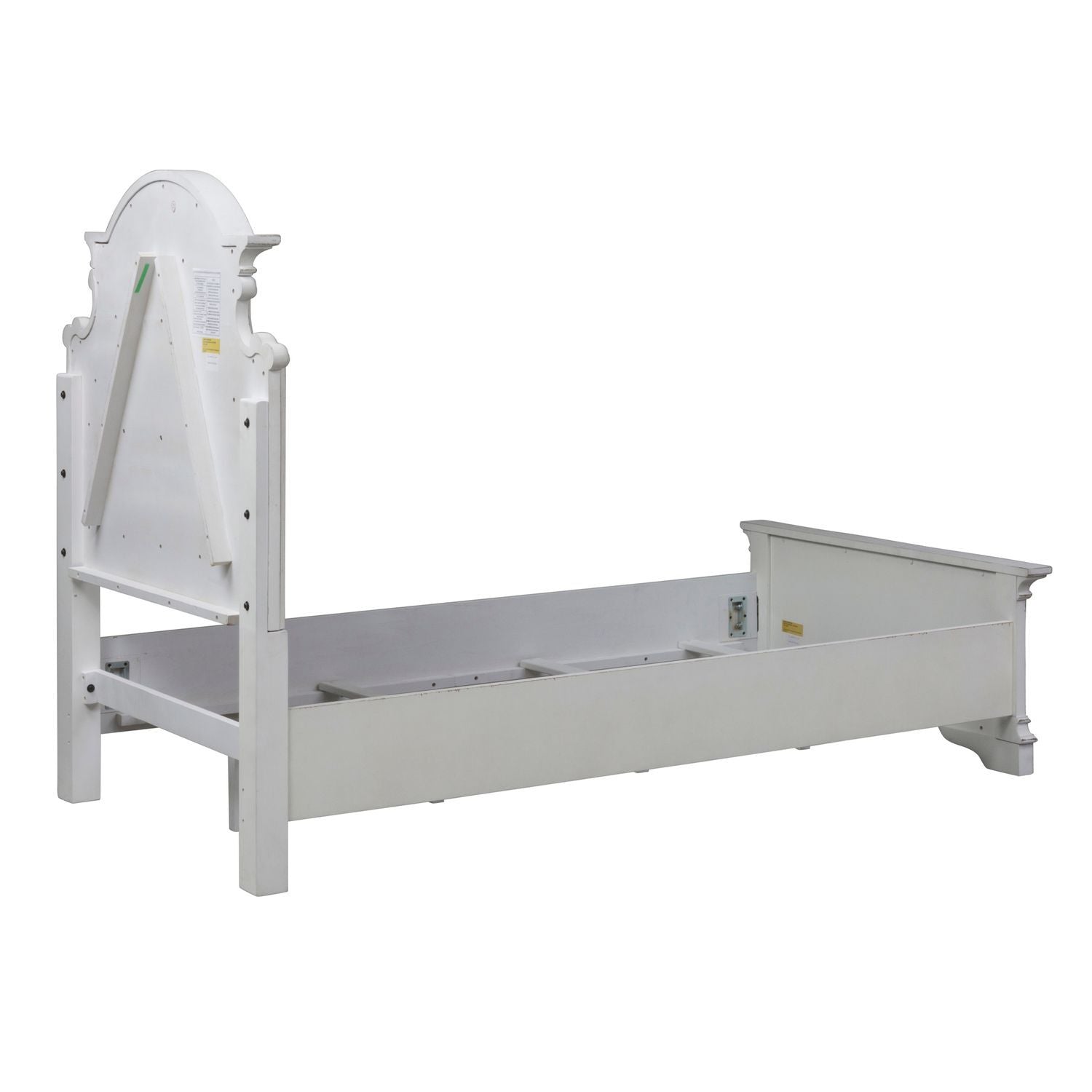 Accent your bedroom with the perfect blend of European Traditional design, using this unique upholstered panel bed. Upholstered in tufted chenille, laced with tones of white, tan and brown threading, this bed features an antiqued white finish with heavy chipping. The arched crowning and dog bone accents on each corner effortlessly add both definition and character, completing your look.