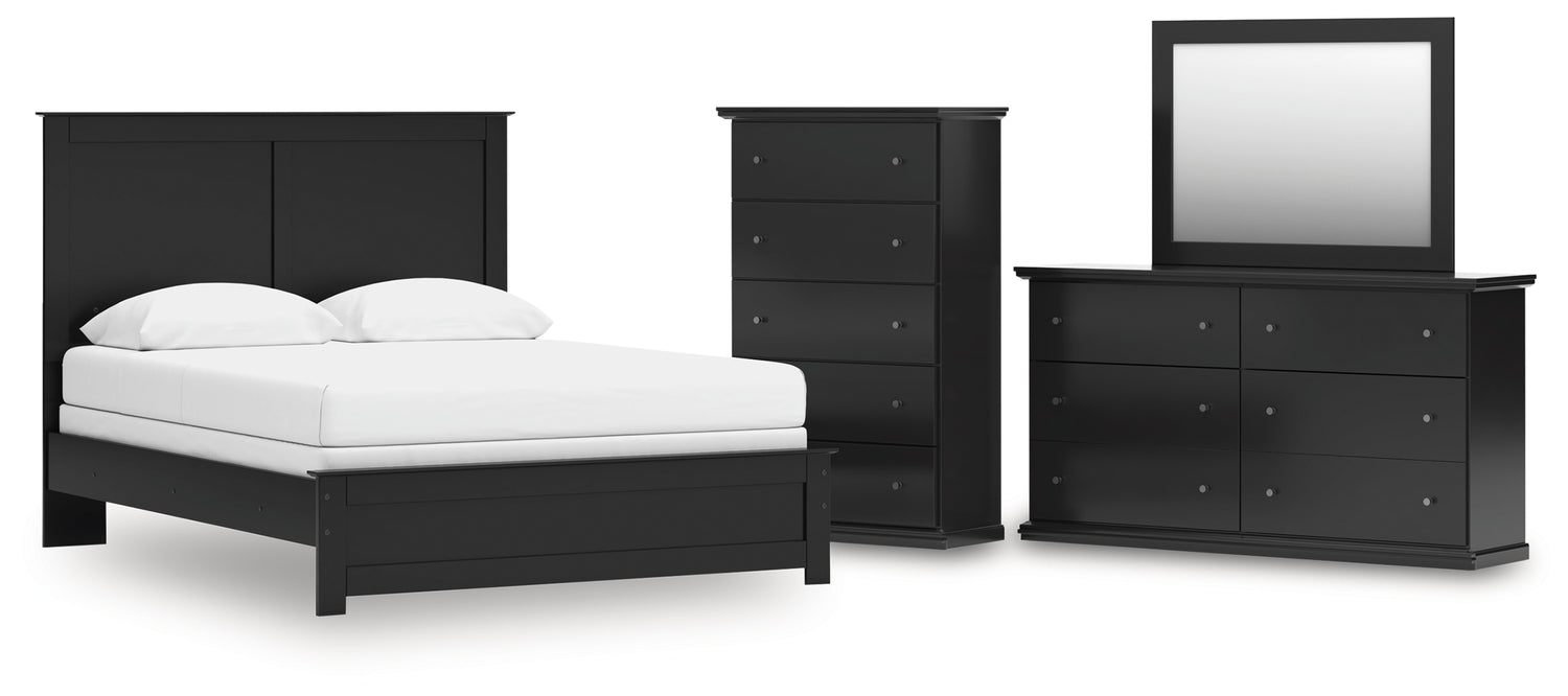 Maribel 5-Piece Queen Panel Bed with Mirrored Dresser and Chest (Queen Panel Rails, Queen Panel Headboard/Footboard, Dresser, Bedroom Mirror, Chest of Drawers)
