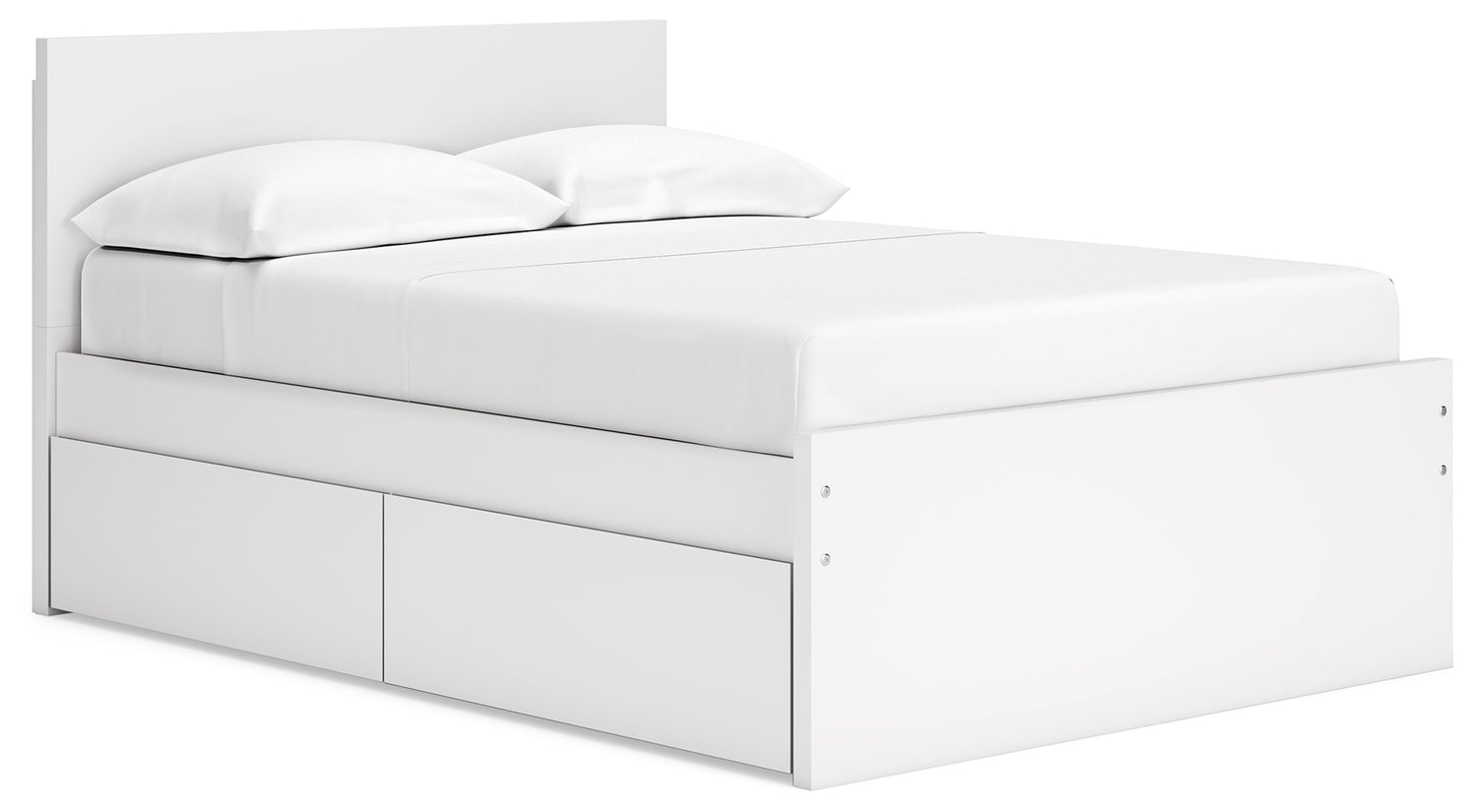 - Includes headboard, panels, rails, roll slats and 2 side storage drawers
