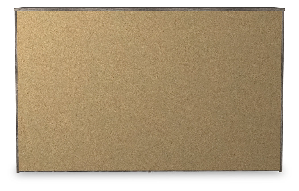 With its clean-lined look and modern attitude, the Ralinski bedroom package is a fresh style awakening. Its simple, unadorned profile and warm gray hue over replicated oak grain easily complement other furniture finishes.