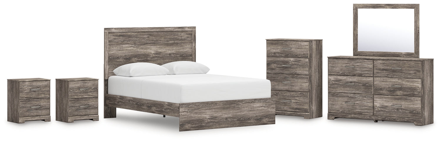 Ralinksi 7-Piece Queen Panel Bed with Mirrored Dresser, Chest and 2 Nightstands (Queen Panel Headboard/Footboard, Queen Panel Rails, Dresser, Bedroom Mirror, Chest of Drawers, Nightstand, Nightstand) is backordered and will ship as soon as it is back in stock.