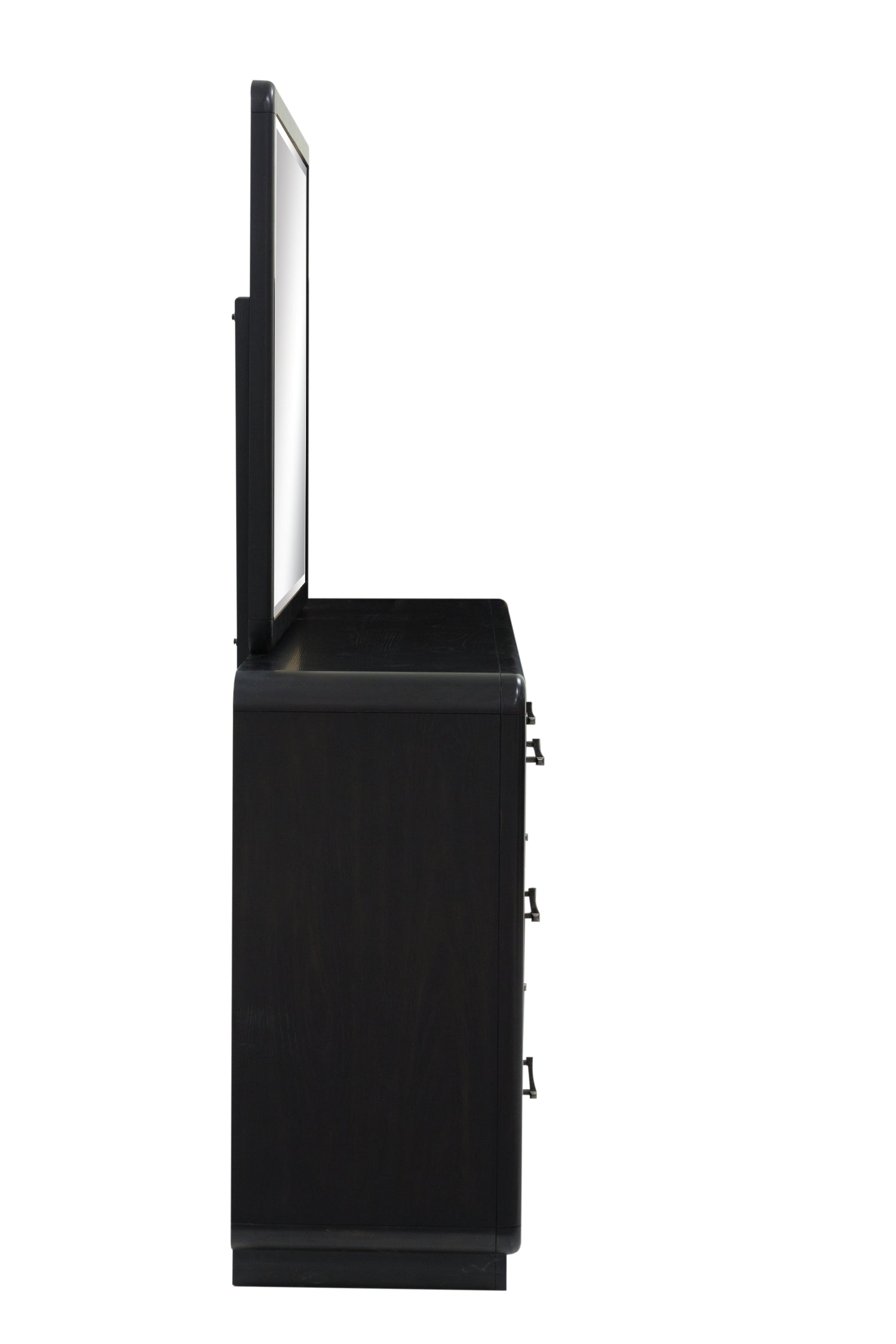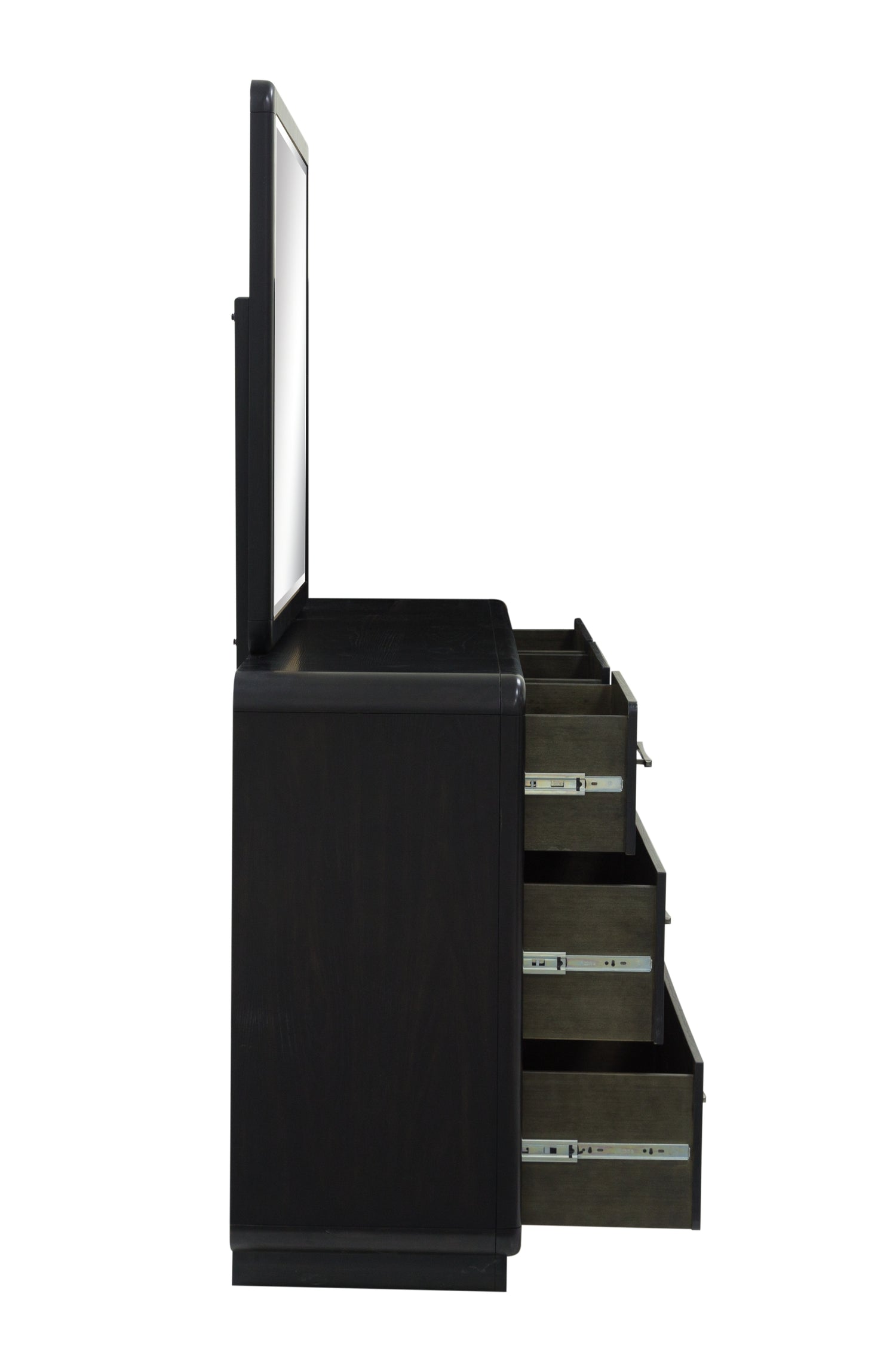 Inspired by art deco design, this softly shaped bedroom package makes a lasting impression in a simply stunning way. Magnificent curved silhouettes are enhanced by a rich layered black finish on the textured wood grain surface. These are the statement pieces you’ve been dreaming of to elevate your contemporary inner sanctum.