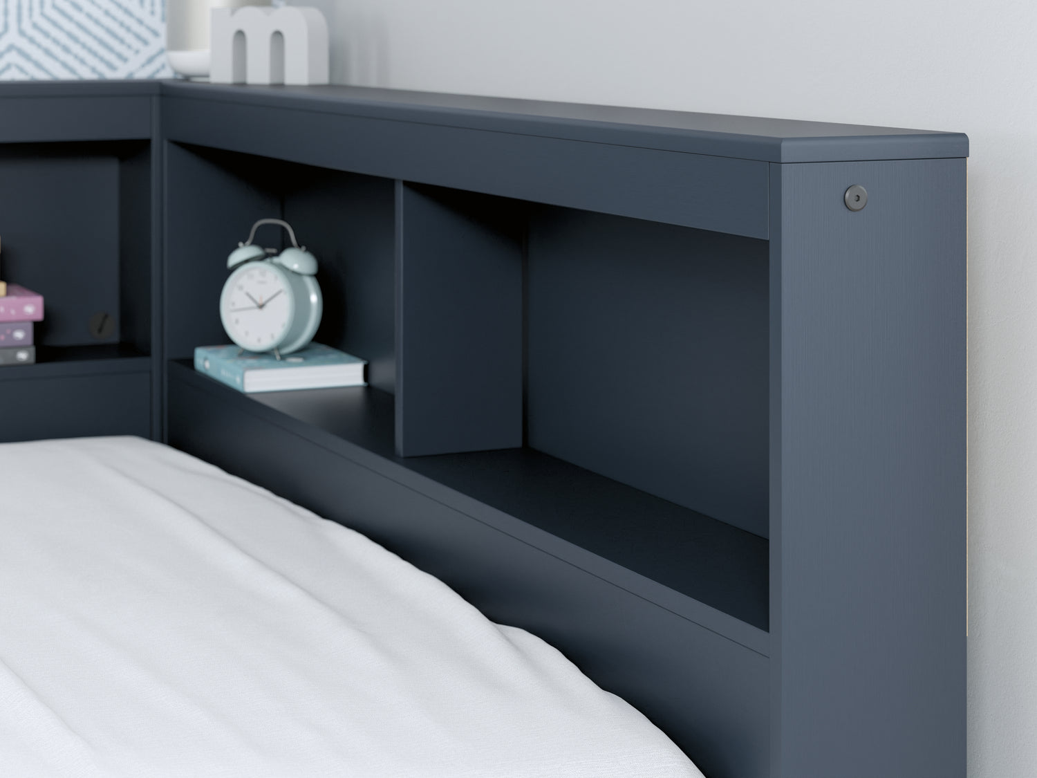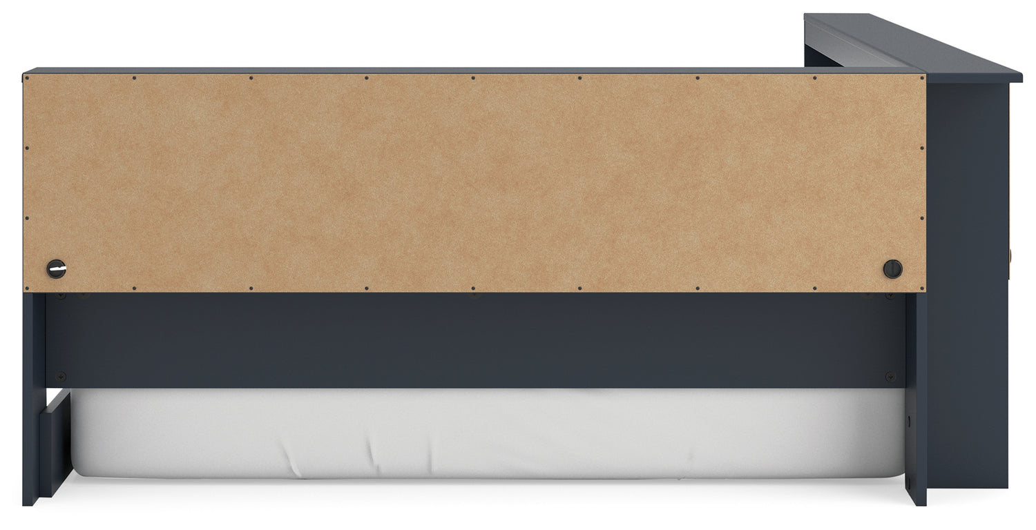 Immerse yourself in this twin bookcase storage bed, where Shaker-style design meets a stunning navy blue finish. The crisp lines effortlessly complement farmhouse, coastal and transitional decor. Sleek in its simplicity, the low-profile bed suits your desire for a fresh bedroom style with essential function.